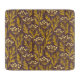 Seamless floral pattern with golden leaves and clusters of round flowers on a dark brown background. The warm tones create an elegant, natural feel.