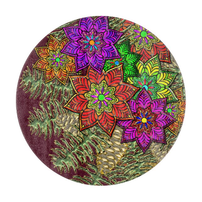 Las brotes de pino, las pineconas doradas y las ricas flores de fantasía de tono joya sobre un fondo burdeos provienen de una pintura digital original de la artista Leslie Sigal Javorek, creada sólo para esta tabla de embutidos de temporada. Inspirado por el fabuloso bordado de arte folclórico ruso y cajas pintadas a mano de los días del último zar. Haga un hermoso regalo, ya sea por sí mismo o junto con sus galletas caseras, o pida un set para sus reuniones de vacaciones con la familia y amigos!