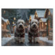 This festive design captures the joyful spirit of the holiday season, featuring an adorable dogs.Nestled in a winter wonderland, complete with a decorated Christmas tree, and beautifully wrapped presents. Snowflakes gently fall, adding a magical touch to the scene, while the vibrant colors of the holiday decorations create a warm and cheerful atmosphere.
