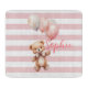 Un oso pequeño más lindo sostiene globos, todo con un tema rosa. Personalizar a su gusto.