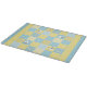 Un divertido Cutting Board, con un diseño de imitación de motivos y patrones de ovejas en azul y amarillo, unido a la coordinación de Check Ginghams y Polkas Dots.