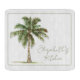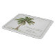 Esta hermosa tabla de cortar de vidrio personalizada presenta una palmera tropical. Personalice con su elección de nombre y texto especial.
