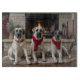 Una escena encantadora capta la esencia de la comodidad y el espíritu de las vacaciones mientras los compañeros peludos adornados en gorras de Santa Claus se reúnen alrededor de una chimenea chocante. La calidez de la chimenea crea un ambiente acogedor para estos adorables caninos, mientras que las medias festivas cuelgan al fondo, lo que crea un ambiente alegre. El encantador ilustracion retrata una imagen atemporal de la compañía y la alegría festiva, perfecta para celebrar la temporada navideña con un toque de encanto canino.