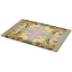 El hermoso patrón de esta placa de corte de 11"x8" se hizo a partir de una fotografía original de HomeWare de orquídeas amarillas a la luz del sol de la tarde. Las flores de orquídea tienen pétalos de color amarillo pálido con centros de color rojo a morado. Un tallo verde oscuro serpentea por el centro de las flores. El fondo pastel se compone de tonos rosas que se mezclan con el verde pálido. En un rincón se pueden ver algunas hojas verdes de una planta de aloe. Cuando la foto se combina para hacer el patrón, el diseño floral se convierte en un jardín de orquídeas con el resplandor rosa del sol de la tarde en el centro.