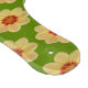 Corta y pon la comida a salvo en este tablero de corte de vidrio de estilo paleta, que muestra la imagen de una flor dahlia amarilla impresa en un patrón repetitivo sobre un fondo verde lima. ¡Un diseño floral y divertido! ¡Un tamaño ideal para degustar frutas y quesos!