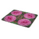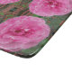 Para los amantes del color rosa - El patrón de esta tabla de corte de 6"x7" se hizo a partir de una fotografía original de HomeWare de un hermoso rosa de jardín rosado. La flor está abierta de manera amplia, con todos sus pétalos en capas escarpadas. El color rosa se hace más profundo en el centro de esta floración exuberante. La foto de la flor, con sus hojas verdes y tierra circundantes, se ha repetido para formar este diseño original. El fondo de los rosas se parece un poco a una alfombra oriental en tonos suaves de verde y tierra.