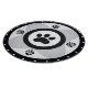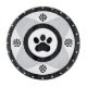 Representación moderna de una huella de pata rodeada de motivos ornamentales en un marco circular. Adecuado para temas que involucren mascotas, naturaleza, cuidado animal y elementos de diseño gráfico contemporáneo.