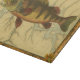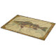 Esta impresión ilustra una imagen artística de un pez perca amarillo. El fondo muestra un mapa geográfico vintage en tonos beige claro. El marco marrón se asemeja al antiguo patrón de madera con flores amarillas-rojas en los bordes. ¡Una gran adición a tu colección de pesca!