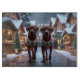 Este diseño festivo captura el espíritu alegre de la temporada navideña, con un perro adorable.Rodeado de un paisaje invernal mágico, con un árbol de Navidad decorado y regalos perfectamente envueltos. Los copos de nieve caen suavemente, añadiendo un toque mágico a la escena, mientras que los colores vibrantes de las decoraciones navideñas crean una atmósfera cálida y alegre.