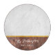 Elevate your kitchen decor with our elegant personalized round glass cutting board! This sophisticated piece features your family's last name and a significant established date, beautifully rendered against a luxurious backdrop of marble, shimmering gold foil, and warm wood grain print textures. More than just a functional kitchen tool, this custom cutting board doubles as a stunning serving platter or a unique display piece. It's the perfect housewarming gift, a thoughtful present for newlyweds, or a stylish way to add a personalized and chic touch to your own culinary space.