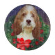 Petit Basset Griffon Vendeen posa bonito dentro de una corona de Navidades. Grandes regalos para los amantes de PBGV. Tarjetas de navidad, ornamentos, ropa y otras ideas de regalo.
