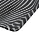 Este diseño presenta una fotografía de primer plano de las rayas blancas y negras sobre la piel de una cebra, creando un patrón muy atractivo. Las cebras son animales equinos africanos relacionados con caballos europeos. Tradicionalmente habitan diversos tipos de hábitats, como sabanas, praderas, bosques, arbustos y zonas montañosas de África meridional y oriental. Las franjas audaces y distintivas de las cebras las convierten en una de las más reconocibles de los mamíferos; por esa razón, han destacado de manera prominente en el arte y las historias de África y de todo el mundo.