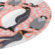 Pingüinos emperadores y sus cachorros sobre un fondo con motivos rosas. Patrón antártico decorativo. ¡Los pingüinos emperadores y sus cubos deliciosos! Fiesta del pingüino: celebración de pingüinos emperadores y cubos lindos. pájaro, invierno, fondo, patrón, ilustracion, textura, bebé, naturaleza, personalizado, blanco, animal, mar, negro, sin costura, personaje, lindo, tela, rosa, dibujo, ornamento