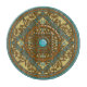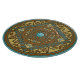 Esta mandala temática de Pisces representa una piedra aguamarina rodeada por el símbolo del signo, la constelación y el símbolo alquímico Agua entre filigree y tejidos.