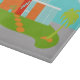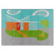 Este moderno tablero de corte de la casa Personalizado de mediados del siglo XX le hará desear sacar la alfombra de BIENVENIDA y sentirse como en casa. El diseño artístico minimalista de los años 60 se compone de una elegante casa de piedra naranja y de cristal acuático sobre un frondoso césped verde en forma de boomerang. El césped forma un oasis en medio de su entorno gris y de hormigón. Una palmera verde se balancea en la brisa. Cuatro escalones de piedras naranjas conducen a la puerta trasera, roja y retro, con tres cristaleras rectangulares. A la izquierda de la puerta, una maceta de flores turquesa acoge una planta tropical verde. La casa tiene un techo blanco inclinado en forma de V que apunta hacia dos nubes blancas con forma de riñón. El cielo es una sombra positiva de agua. ¡Nadie querrá tirar piedras de esta moderna casa de cristal! ¡Compra este producto kitschy de la edad espacial y sé el gato más genial de tu bloque!