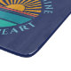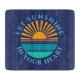 Una plantilla de foto redonda sobre un fondo azul oscuro. Haga clic en personalizar para cambiar la puesta de sol a su propia imagen, y el texto a la suya, o cómpralo como está.