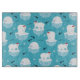 Playful polar bears in Santa hats float on icy blue seas surrounded by igloos, fish, and snowflakes. A cool Christmas favorite.