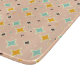 Retro geometric pattern with teal, orange, and black star-shaped diamonds on a peach background. The design conveys a playful, vintage feel.
