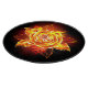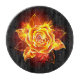 Rosa en llamas del fuego y la llama sobre fondo negro.