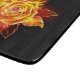 Rosa en llamas del fuego y la llama sobre fondo negro.