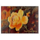 Representación estilizada de un rosa amarillo-naranja sobre un fondo rojo oscuro y naranja. Añade tu propio texto.