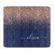 Tablón de cortar con monograma de letra cursiva con brillo rosa dorado y azul marino. Esto hace el regalo perfecto para graduación, cumpleaños, boda, despedida de soltera, aniversario, baby shower o fiesta de soltera para alguien que ama el lujo y los estilos elegantes.