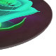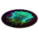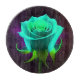 Una rosa verde brillante en el centro de intrincados patrones de hojas de estilo neón azul, creando un diseño llamativo. Los colores vívidos y la iluminación estilizada evocan una estética moderna y artística.