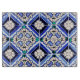Un hermoso diseño vintage de Azulejo azulejos patrón español y portugués en azul marino, blanco y toques de naranja verde y claro. Un bonito sabor mediterráneo perfecto para la decoración de verano. El diseño de mosaico geométrico rústico perfecto, ideal para cualquier ocasión.