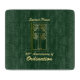 Diseño elegante, este regalo del 50° aniversario de la Ordenación, recuerdo, obsequio y fiesta esencial para un sacerdote tiene palabras de color oro y una cruz con anfitrión detrás de ella en un estilo dorado. El fondo es un aspecto de cuero en verde oscuro. Hermosa tarjeta para desear a un sacerdote felicitaciones y bendiciones por su 50 aniversario!