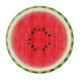Disfrute de una jugosa tajada de sandía con corteza, semillas, agujeros de semilla y un trozo de piel a rayas en el borde.