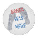 Santa Estaba Aquí texto rosa y azul y dos huellas de pies en la nieve fresca. Navidades divertidos: impresiones de Navidad, regalos y camisetas para diversión, humor y buen humor