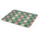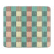 A seamless plaid pattern with alternating pastel squares in turquoise, cream, and beige. Each square is filled with a crisscross grid design, creating a vintage and orderly feel.
