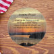Coge y pon la comida a salvo en este tablero decorativo, redondo, de vidrio que muestra la foto de un paisaje marino dramático y naranja junto con las palabras inspiradoras de la Oración de la Serenidad. Cuando no está en uso, este tablero redondo hace una hermosa pantalla de cocina.