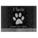 Paw de perro plateado sobre fondo negro. ¡Debes saber que tienes una foto!