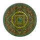Esta mandala temática Taurus representa una piedra esmeralda rodeada por el símbolo del signo, la constelación y el símbolo alquímico de la Tierra entre filigree y tejidos.