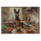 Add a bold and unique touch to your kitchen with this Thai Ridgeback design featuring a confident pup cooking in a cozy setting. With its sleek coat, athletic build, and distinctive ridge, this artwork captures the breed’s rare and striking personality.