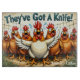 The design features a whimsical lineup of startled chickens accompanied by the playful phrase “They’ve Got a Knife,” adding a lighthearted touch that appeals to chicken enthusiasts and those who enjoy a clever culinary joke. This unique cutting board is not only practical but also serves as a conversation starter, making it an exceptional gift choice for hosts and hostesses who appreciate both quality and charm in their kitchen accessories.