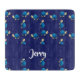 Añade tu nombre a esta adorable tortuga feliz en el diseño de patrones de fondo azul.