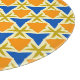 Triángulos azules y naranjas y estrellas doradas sobre fondo amarillo pálido, patrón geométrico abstracto.