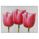 Una tabla de cortar preciosa que ofrece un trío del tulipán color de rosa del color florece para hacer su cocina extraordinariamente especial.