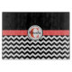 Una tabla de corte personalizado con un patrón de chevron en blanco y negro. Puede personalizar este producto agregando su propio nombre y inicial al centro del logotipo del monograma.