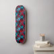 Esta tabla de skate de alta calidad se muestra en una impresión artística de varios colores.