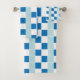 Juego de toallas de baño de pizarra azul blanco. Comprueba el patrón de comprobación de tablero de cheques marcado.