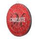 tablero de dardos purpurina rojo moderno con un nombre tipográfico blanco y monograma negro. Personaliza con el nombre y la inicial.