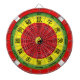 Rueda que representa los signos zodiacos chinos y los años a los que se refieren, en colores rojo, verde y amarillo
