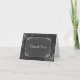 Tarjetas de agradecimiento de boda con estilo de pizarra de moda hechas para parecer una pizarra antigua. Gráficos de un borde decorativo blanco con volutas gris claro decoran la parte frontal de la tarjeta. Texto blanco en la parte frontal dice, Gracias. Personalice todo el texto para adaptarlo a las necesidades de su boda. Productos de boda a juego disponibles. Forma elegante de enviar sus agradecimientos después de la boda.