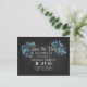 El pizarrón rústico y moderno permite guardar las postales de fecha con ramos florales azules, margaritas, flores silvestres y diseño de escritura de caligrafía de moda.