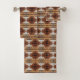 Conjunto de toallas de baño de tres tamaños, amenidad decorativa para el baño y accesorio de decoración para el hogar impreso con un diseño de imagen de patrón geométrico repetido y simétrico de tablones de madera desgastada en estilo de medios mixtos de TheFabricSeal en Zazzle #ZazzleMade https://www.zazzle.com/store/thefabricseal