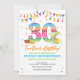 Taco 'Bout una fiesta de cumpleaños número 30! Invite a los huéspedes a una fiesta 30 llena de diversión para celebrar a la chica o el chico de cumpleaños. Esta invitación digital tiene un papel de personalizado, un picado número 30 y acentos de decoración de fiesta colorida que inspirarán decoraciones para el fiesta!