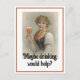 Esta postal contiene una antigua litografía victoriana de una mujer sosteniendo un vaso de cerveza, con la frase "¿Tal vez beber ayudaría?"